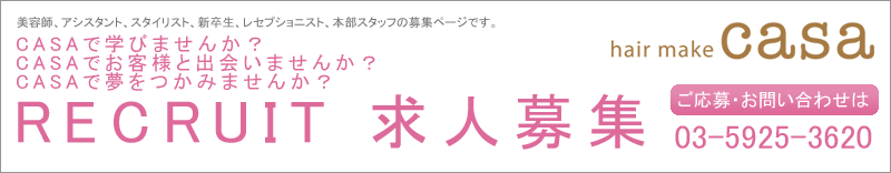 casaが目指すこと、それは世界で一番の美容師であること。合い言葉は「誰にも負けない努力」と「前例のないことへの挑戦」。技術を修得するためのプログラム、各種講習などは充実しております。